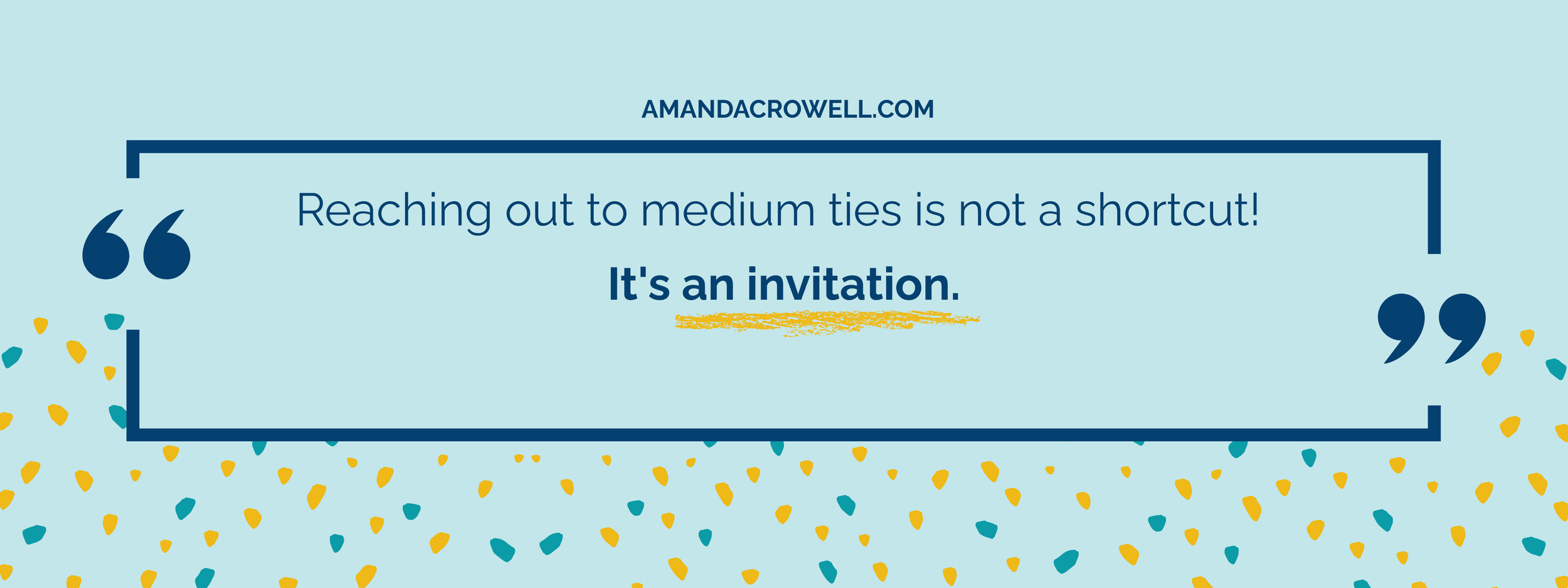 Ask Yourself: Who are three moderate ties you’d like to reconnect with this month? What’s one authentic way you could reach out to each of them?